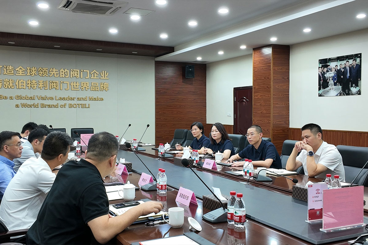 調研組一行首先走進伯特利科技數字展廳,詳細了解了伯特利科技的發展歷程、核心產品與技術成果。黃聰策總經理重點介紹了幾款行業領先的閥門產品,展現了公司在嚴苛工況與新能源領域的創新突破:強制密封球閥(軌道球閥、)快速切換盲板閥、金屬密封低溫蝶閥、液氦閥門,朱啟仁副部長對產品技術成果給予高度評價,強調科技創新是推動企業高質量發展的核心引擎。