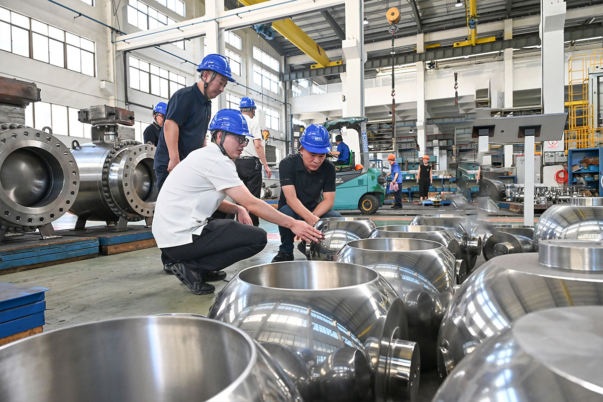 領(lǐng)導們近距離觀摩了高壓大口徑球閥、深冷蝶閥等核心產(chǎn)品的生產(chǎn)線,對伯特利在精密加工、材料應用及表面處理等工藝環(huán)節(jié)的嚴格把控表示高度認可。車間內(nèi)高效運轉(zhuǎn)的自動化設(shè)備及智能化管理系統(tǒng),充分展現(xiàn)了伯特利在智能制造領(lǐng)域的深厚實力。
